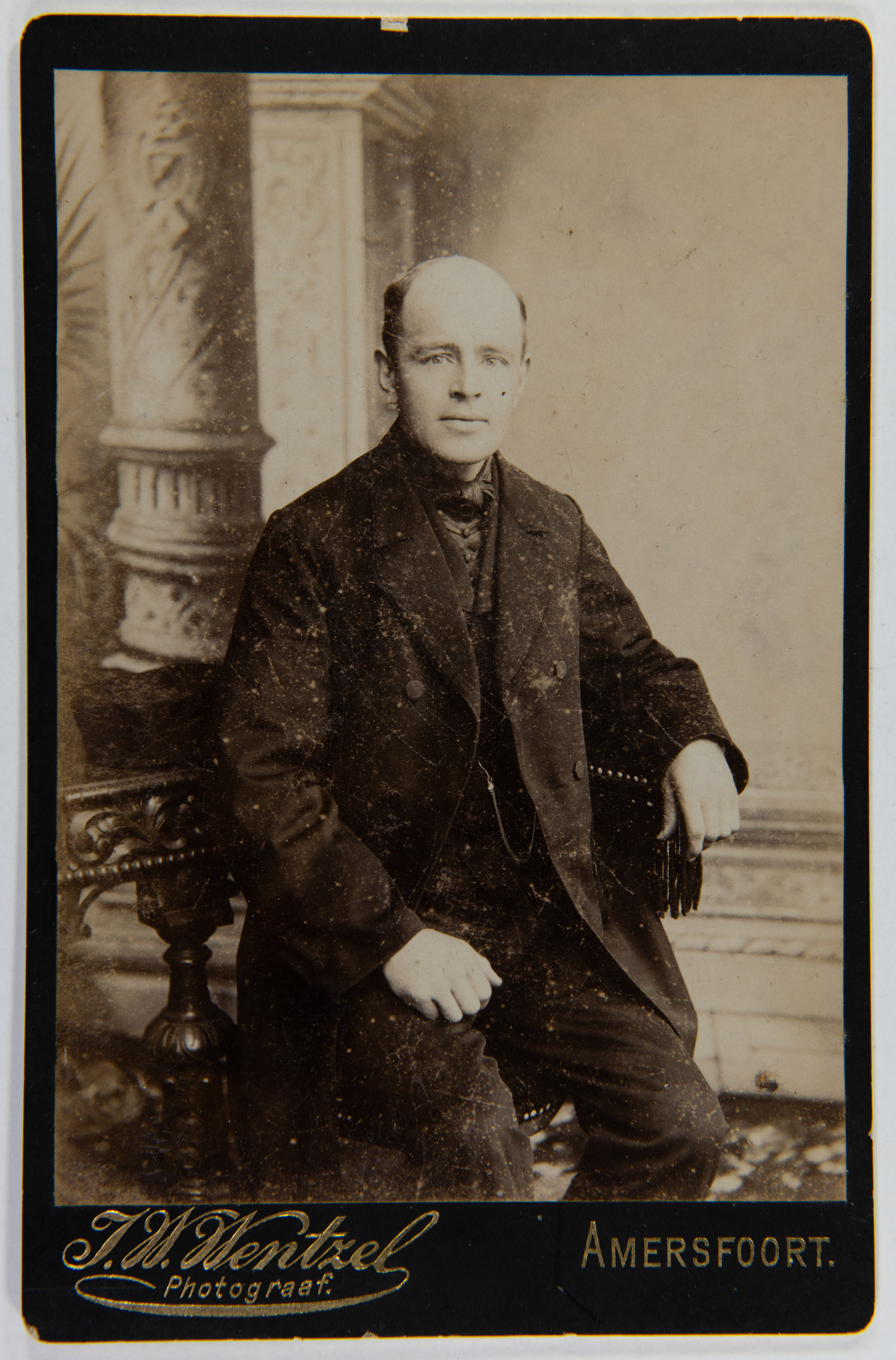 Jonkheer Jan Cornelis van de Poll, geboren in Amersfoort 10 juni 1860, als zoon van Abraham Nicolaas Jan van de Poll. Zijn vader was President van de Arrondissementrechtbank. De familie van de Poll vertrok op 9 oktober 1874 naar Den Haag. J.C. van de Poll was civiel ingenieur. Hij overleed op 32 jarige leeftijd op 8 maart 1893 in Den Haag. Hier gefotografeerd door Abraham Bolland tussen 1872 en 1874.